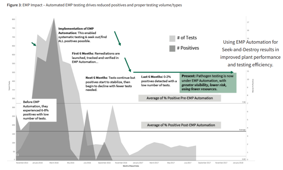 - Over time, the program yielded the desired results. The digital collection of data allowed the food safety team to determine the proper mix of test volume, types, methods, and frequency.